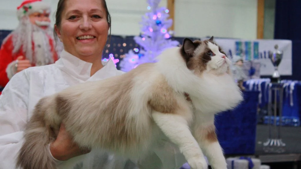 Ragdollen har blitt en populær utstillingskatt med sitt karakteristiske lyse utseende med maske og hvite flekker. Pelsen er silkemyk og den har blå øyne. Den regnes blant de litt større rasene, og har et rolig og behagelig temperament. Ragdollen passer godt som familiekatt.